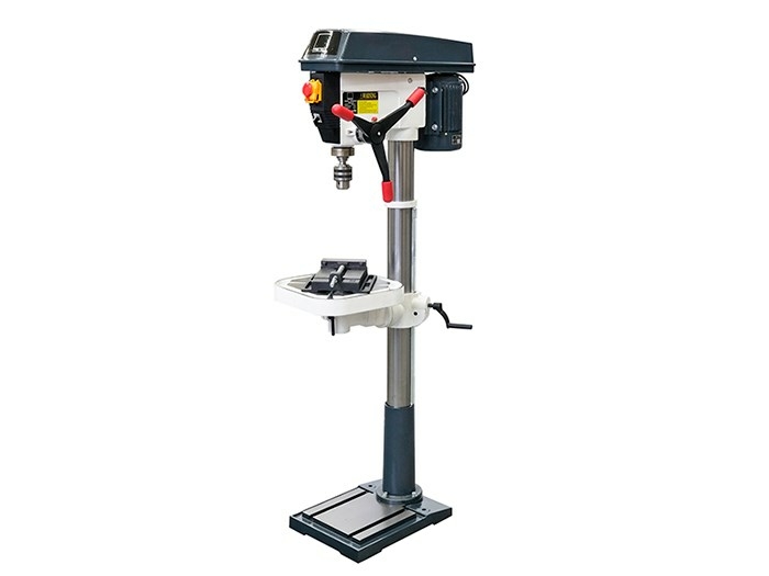 • Станок оснащен электродвигателем мощностью 1,1 кВт, который обеспечивает стабильную работу и позволяет сверлить отверстия диаметром до 32 мм в различных материалах, включая металл, дерево и пластик;