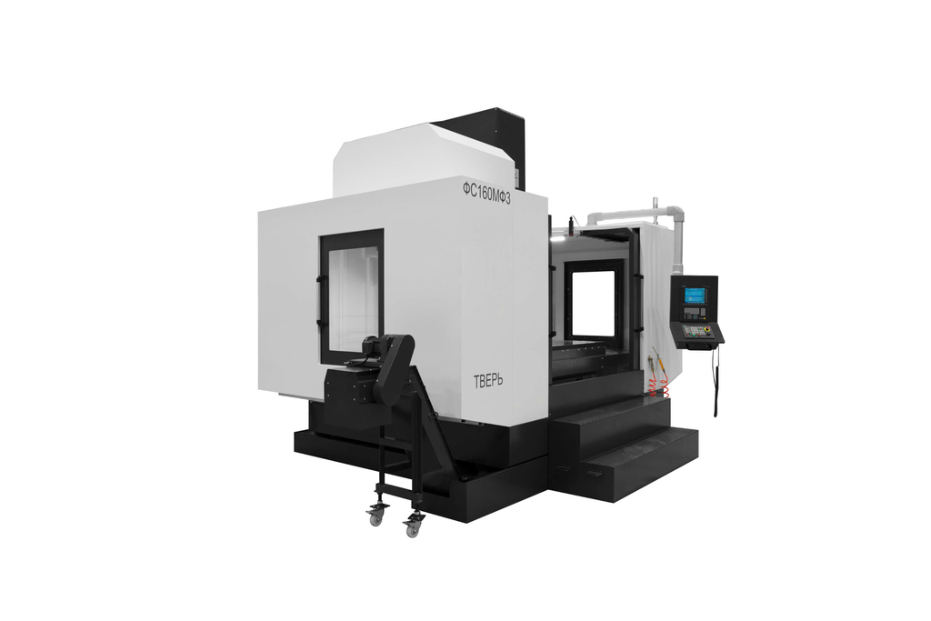 Вертикальный обрабатывающий центр ФС160МФ3/4/5 большого размера с конусом шпинделя BT50 ориентирован на обработку деталей сложной криволинейной формы (диск, плита, рычаг, корпусная деталь, пресс-форма, штамп и др.) из чугуна, сталей, цветных металлов и пластмасс. Установка поворотного или наклонно-поворотного стола значительно расширяет диапазон технологических возможностей станка, делая возможным обработку сложных фасонных поверхностей и деталей под различными углами с разных сторон относительно инструмента. Высокоскоростной шпиндель, автоматическая система смены инструмента с вместительным магазином инструментов, передовая система ЧПУ обеспечивают высокопродуктивную черновую, получистовую и чистовую обработку деталей высокого качества.
