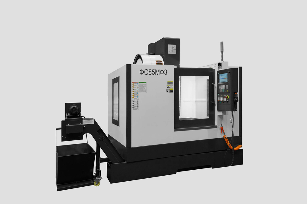 Вертикальный обрабатывающий центр ФС85МФ3/4/5 среднего размера с конусом шпинделя BT40 ориентирован на обработку деталей сложной криволинейной формы (диск, плита, рычаг, корпусная деталь, пресс-форма, штамп и др.) из чугуна, сталей, цветных металлов и пластмасс. Установка поворотного или наклонно-поворотного стола значительно расширяет диапазон технологических возможностей станка, делая возможным обработку сложных фасонных поверхностей и деталей под различными углами с разных сторон относительно инструмента. Высокоскоростной шпиндель, автоматическая система смены инструмента с вместительным магазином инструментов, передовая система ЧПУ обеспечивают высокопродуктивную черновую, получистовую и чистовую обработку деталей высокого качества.