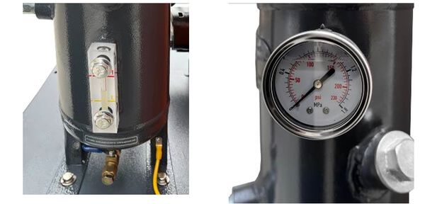 Накопительный бак сепаратора оснащено шкалой уровня масла и манометром. |