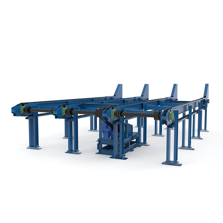 Эстакада изготовлена из массивных металлоконструкция, позволяет накапливать большой объем круглого леса. Мощные подающие цепи двигаются по легированным направляющим высокой фрикционной стойкости обеспечивает надежную и бесперебойную подачу бревен.